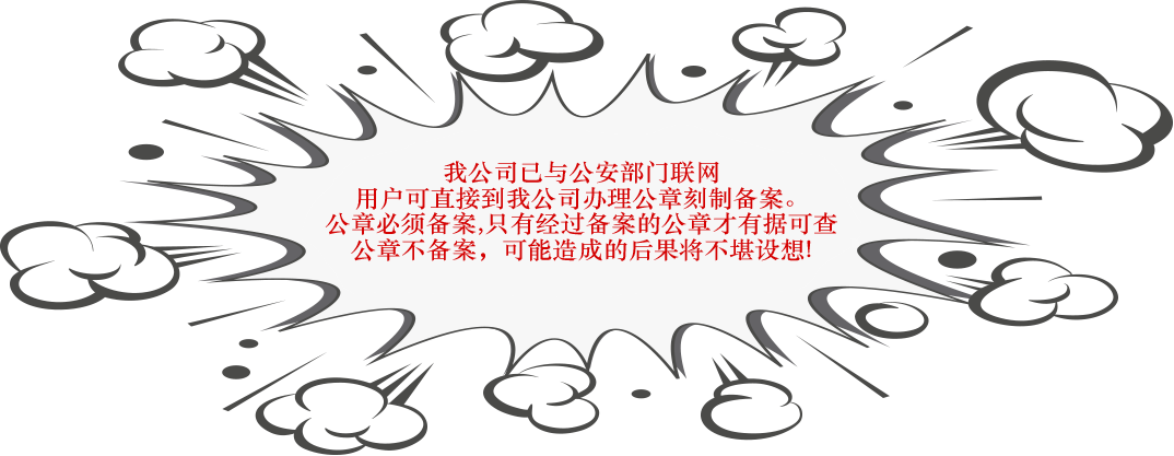 我公司與公安部門聯網,是遼寧省公安廳指定的公章制作單位。用戶可直接到我公司辦理刻章和相關備案手續,聯系電話86570111,公司地址:大連市甘井子區東緯路19-2號